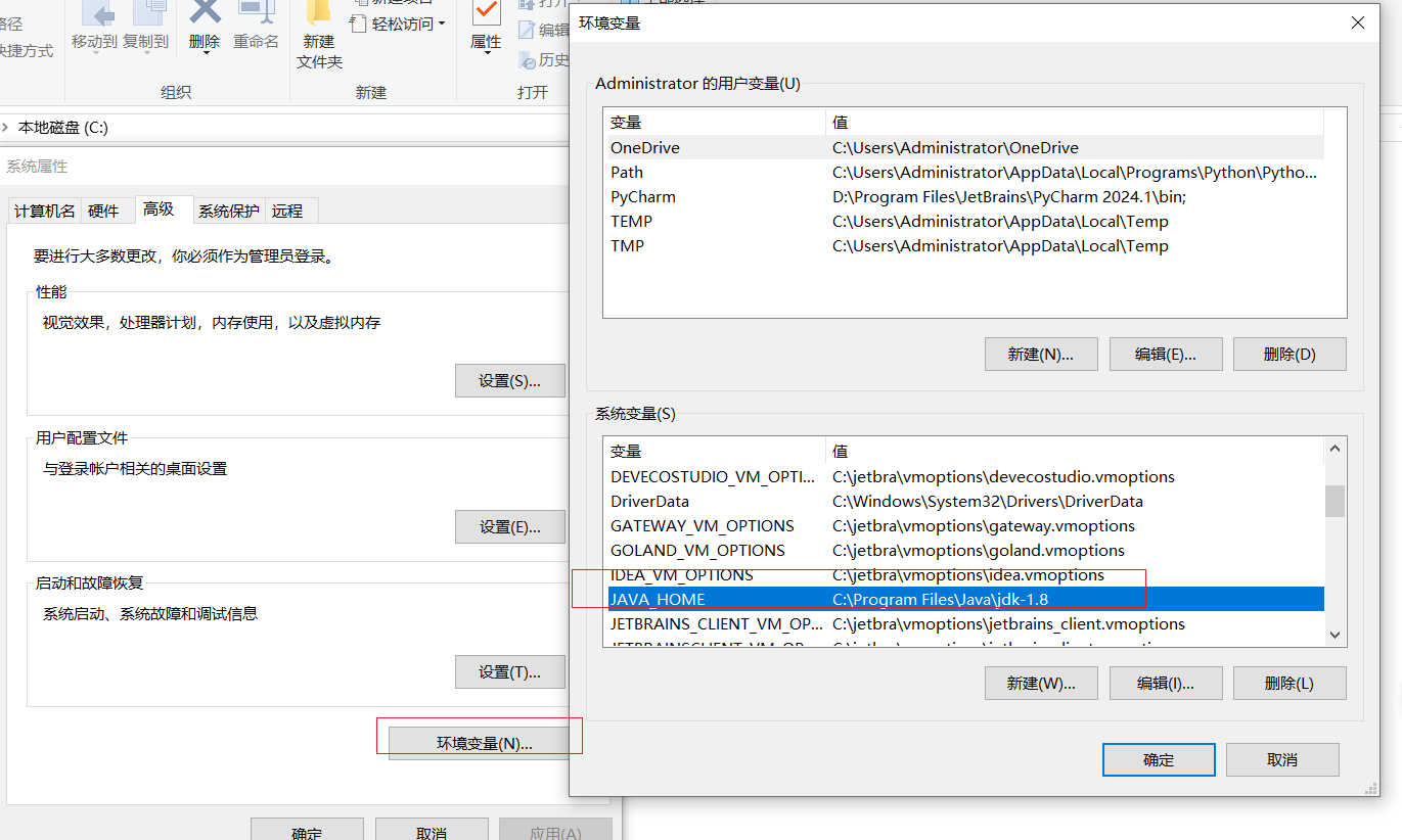 JAVA_HOME变量值:JDK的安装路径在系统变量处查找