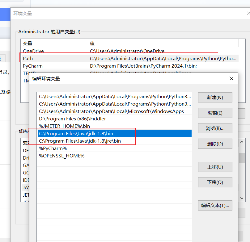 %JAVA_HOME%\bin;%JAVA_HOME%\jre\bin或者对应文件路径![]()